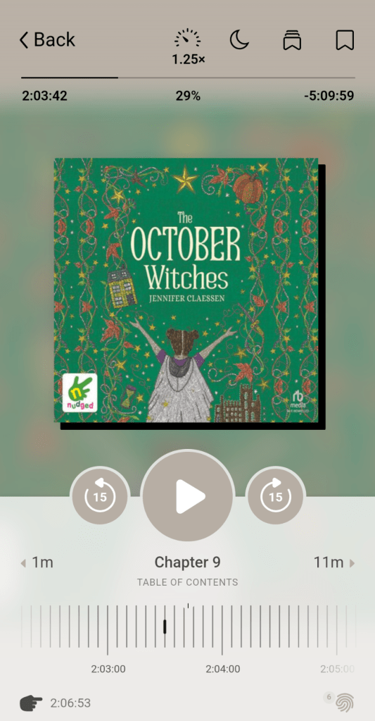 The last book on my list (I think I started it a couple of weeks ago, but I don’t really remember), is my only audiobook on this list. The book is The October Witches by Jennifer Claessen. I borrowed this book from my library using the Libby app. I haven’t listened to much of it so far, but it is quite fun. There are lots of different characters to get to know, which feels a little confusing in the beginning, but I think I’ll get the hang of it soon.